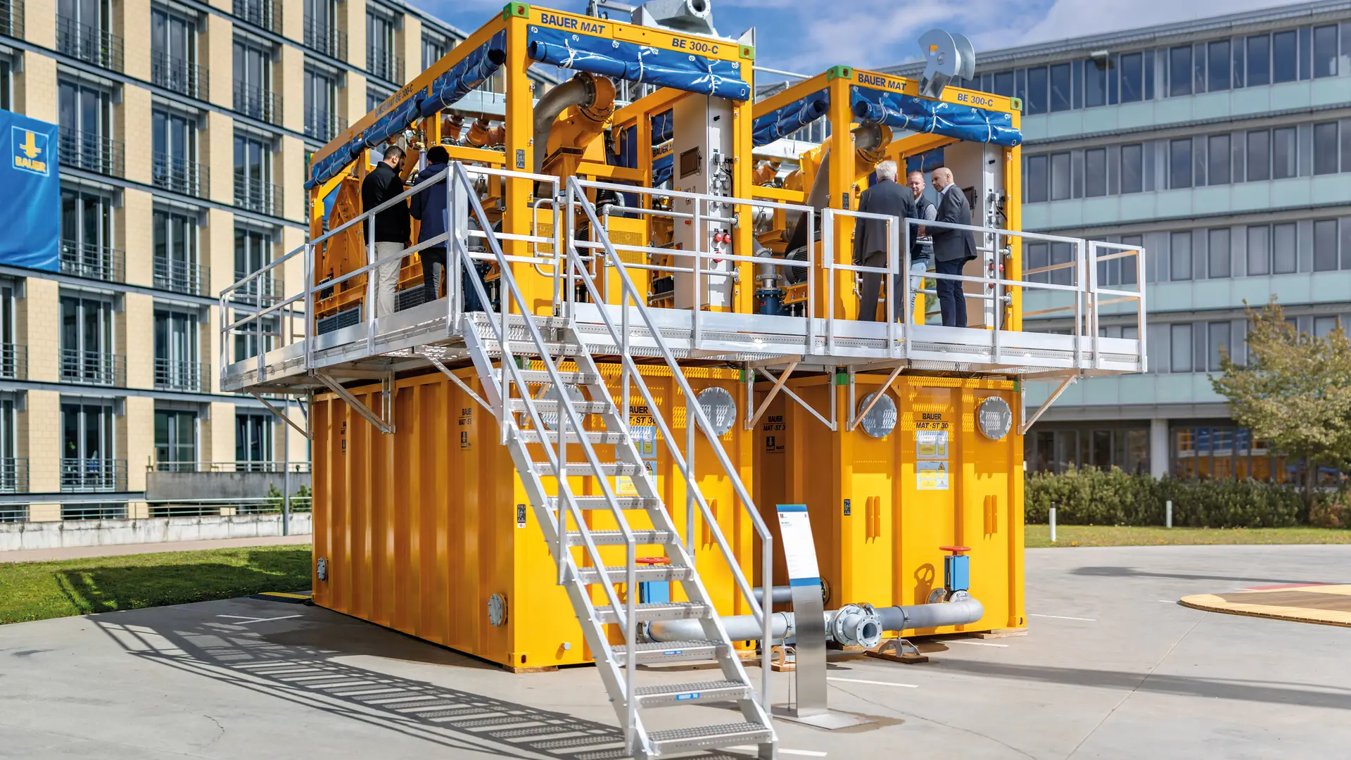 Das ist aber noch nicht alles: Weil alle Komponenten innerhalb der Containerrahmen verbaut sind, können auch Transport, Aufbau und Inbetriebnahme vor Ort – zum Beispiel bei Fräs-, Tunneling-, Greifer- oder Bohrprojekten – schnell und unkompliziert durchgeführt werden. Der Clou: Bei Bedarf lässt sich die BE 600-C problemlos wieder in zwei Einzelanlagen BE 300-C aufteilen, das vorgeschaltete Grobsieb kann auch nur eine Anlage beschicken. „Damit ist unsere Anlage so flexibel wie die Projekte unserer Kunden“, bringt es Tim Eberwein, Vertriebsleiter der BAUER MAT Slurry Handling Systems, auf den Punkt.