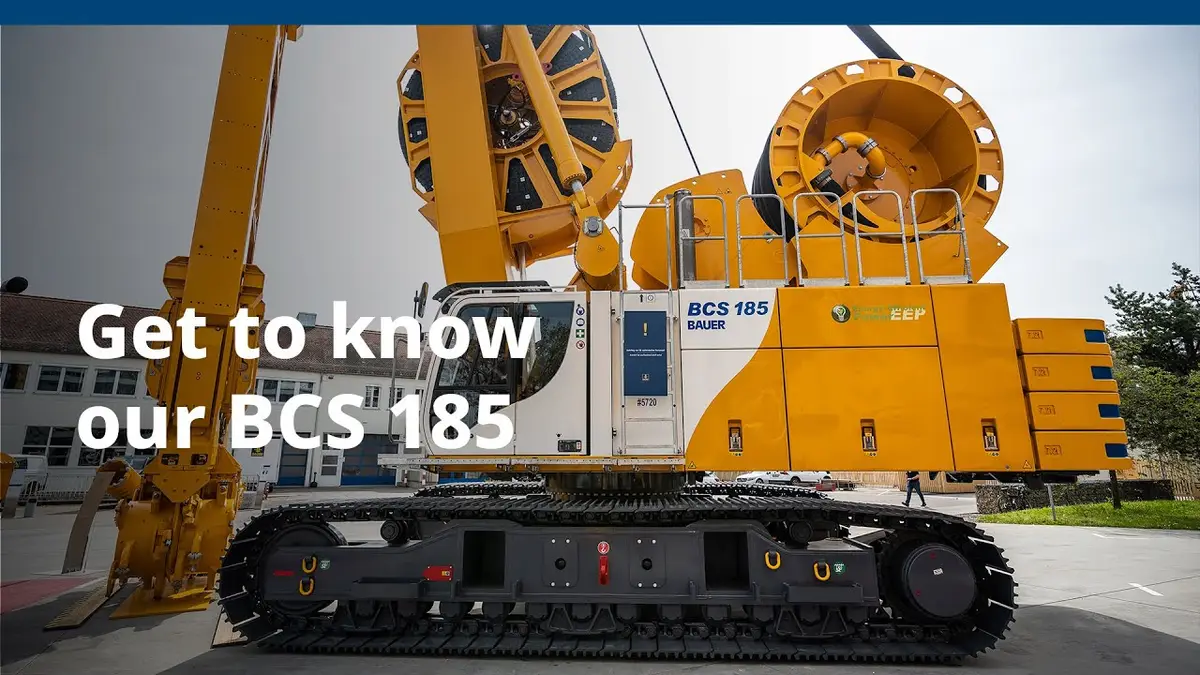Il sistema di scavo Bauer BCS 185 raggiunge profondità fino a 90 m. Esso è costituito da un supporto di base MT 185 con un sistema di tamburi HDS 90 per tubi flessibili e una macchina BC 35 per lo scavo di trincee (oppure, come opzione, un altro modello BC).